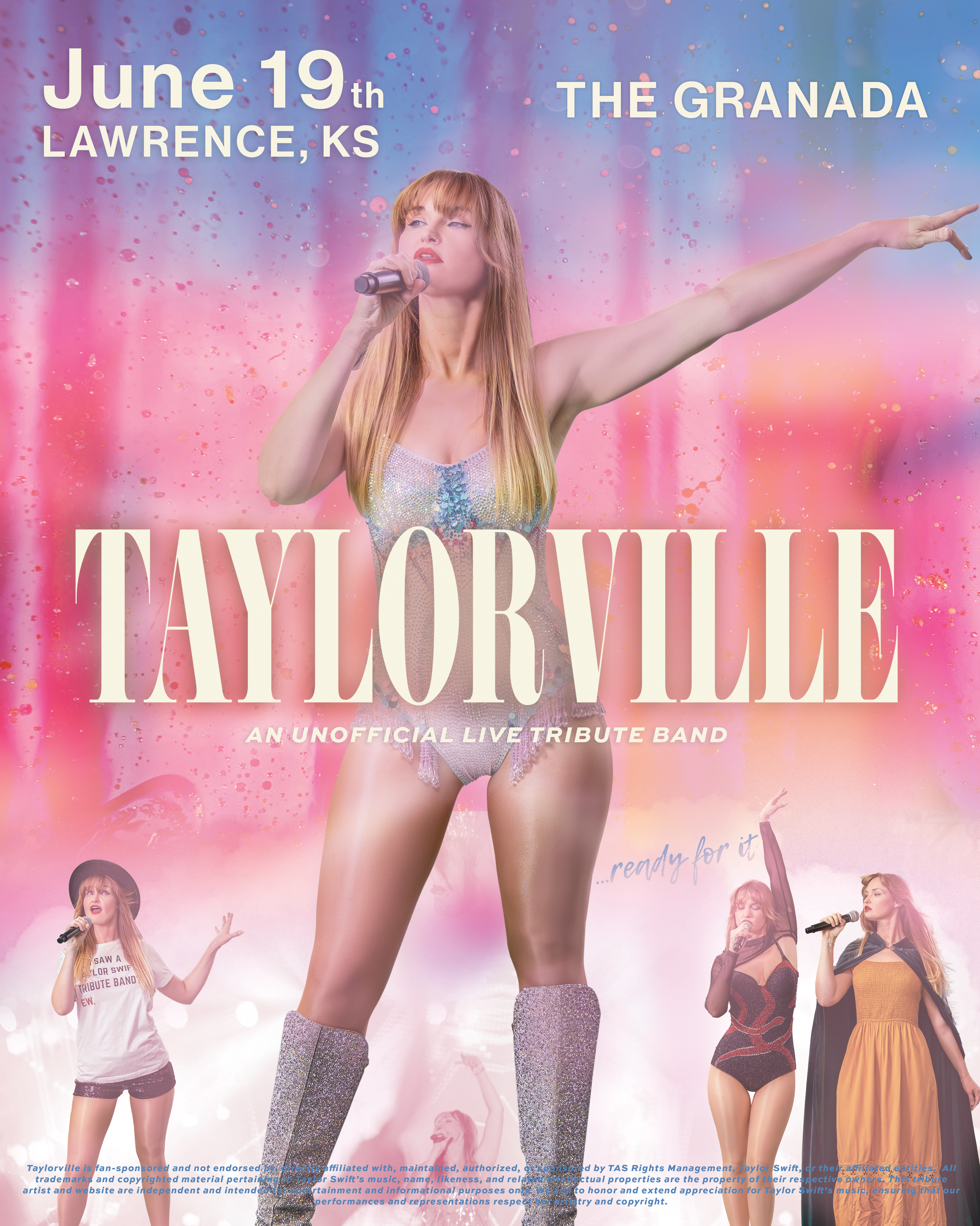 Taylorville is fan-sponsored and not endorsed by, directly affiliated with, maintained, authorized, or sponsored by TAS Rights Management, Taylor Swift, or their affiliated entities. All trademarks and copyrighted material pertaining to Taylor Swift's music, name, likeness, and related intellectual properties are the property of their respective owners. This tribute artist and this profile are independent and intended for entertainment and informational purposes only. We aim to honor and extend appreciation for Taylor Swift's music, ensuring that our performances and representations respect her artistry and copyright.